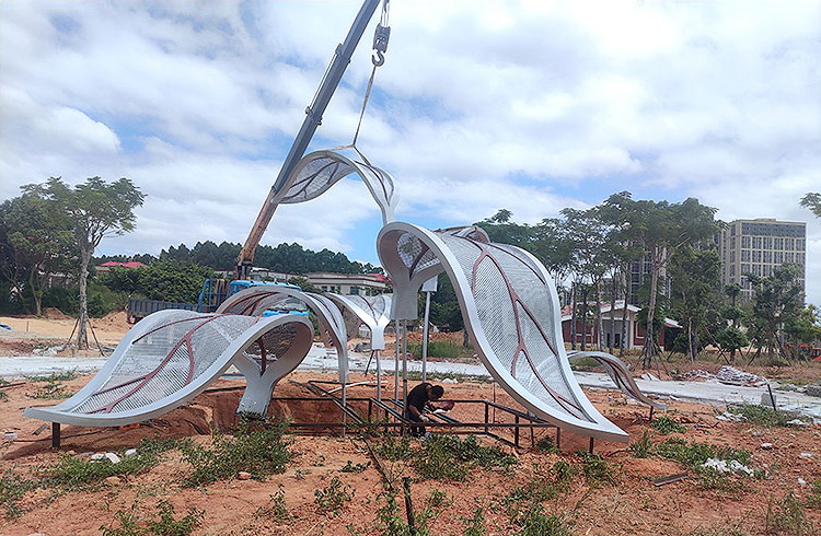 戶(hù)外園林不銹鋼雕塑除傳遞美,還需要考慮其耐用性,優(yōu)選304、316以上型材,在造型上也需要避免尖銳棱角以防意外,還需要考慮到其反射,以免對(duì)行人車(chē)輛造成視覺(jué)干擾。