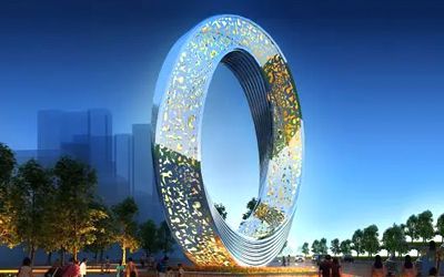 地產(chǎn)類(lèi)不銹鋼雕塑以大氣磅礴為主要表現(xiàn)形式,一般都是抽象的,傳遞一種視覺(jué)上的震撼效果,常見(jiàn)如圓環(huán)、鏤空球、云朵、假山、浪花、水滴等等。