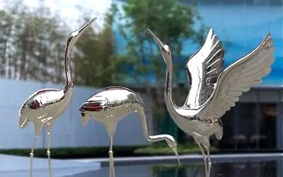 應(yīng)用于水景之中的不銹鋼雕塑,包括但不限于人物、動(dòng)物植物、景觀(guān)擺件等,常見(jiàn)如貝殼、海螺、海豚、魚(yú)、仙鶴、天鵝、青蛙、小鹿、荷花、蓮花、海浪浪花、水滴、假山、鏤空球、圓環(huán)等等。